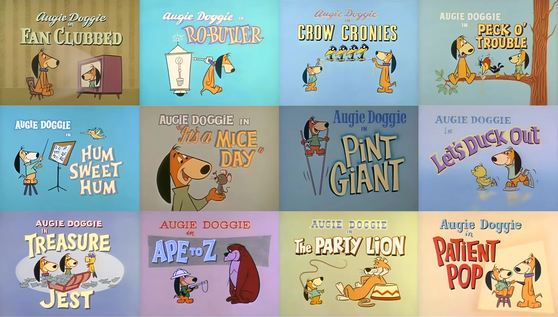 Look at the type in this title from Augie Doggie’s episode “Yuk-Yuk Duck,” with its pale yellow letters and dark, hard, offset shadow that lifts it off the background and creates the illusion of depth.